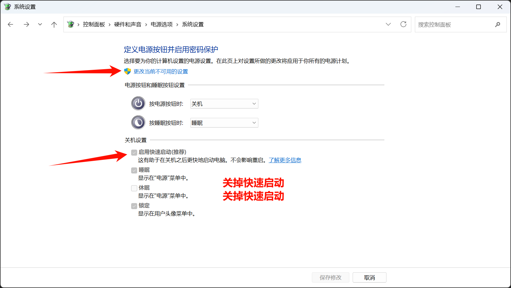 关闭快速启动
